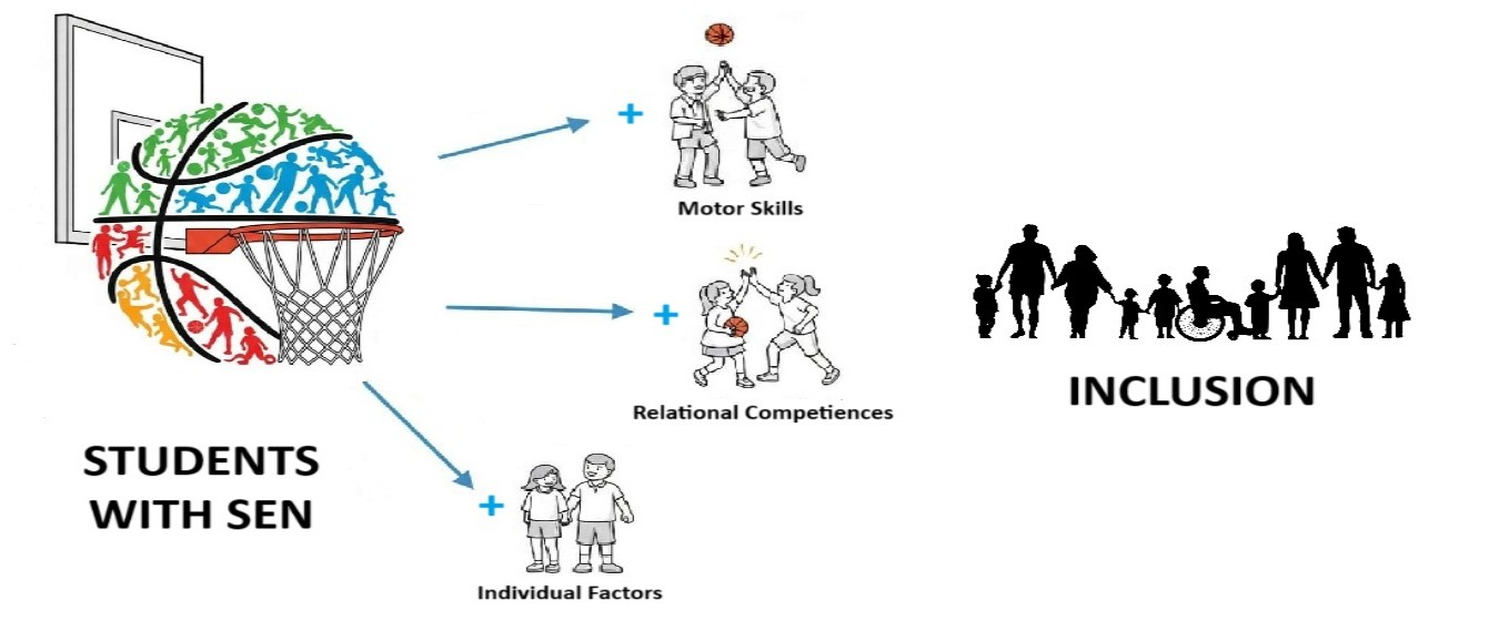 The inclusion of students with Special Educational Needs represents a critical challenge for contemporary education systems. Beyond traditional pedagogical approaches, recent research highlights the potential of sports as a tool for socio-emotional and cognitive development. Basketball, with its dynamic and cooperative nature, emerges as a particularly suitable activity for promoting motor, relational, and self-regulatory skills in students with learning difficulties.
