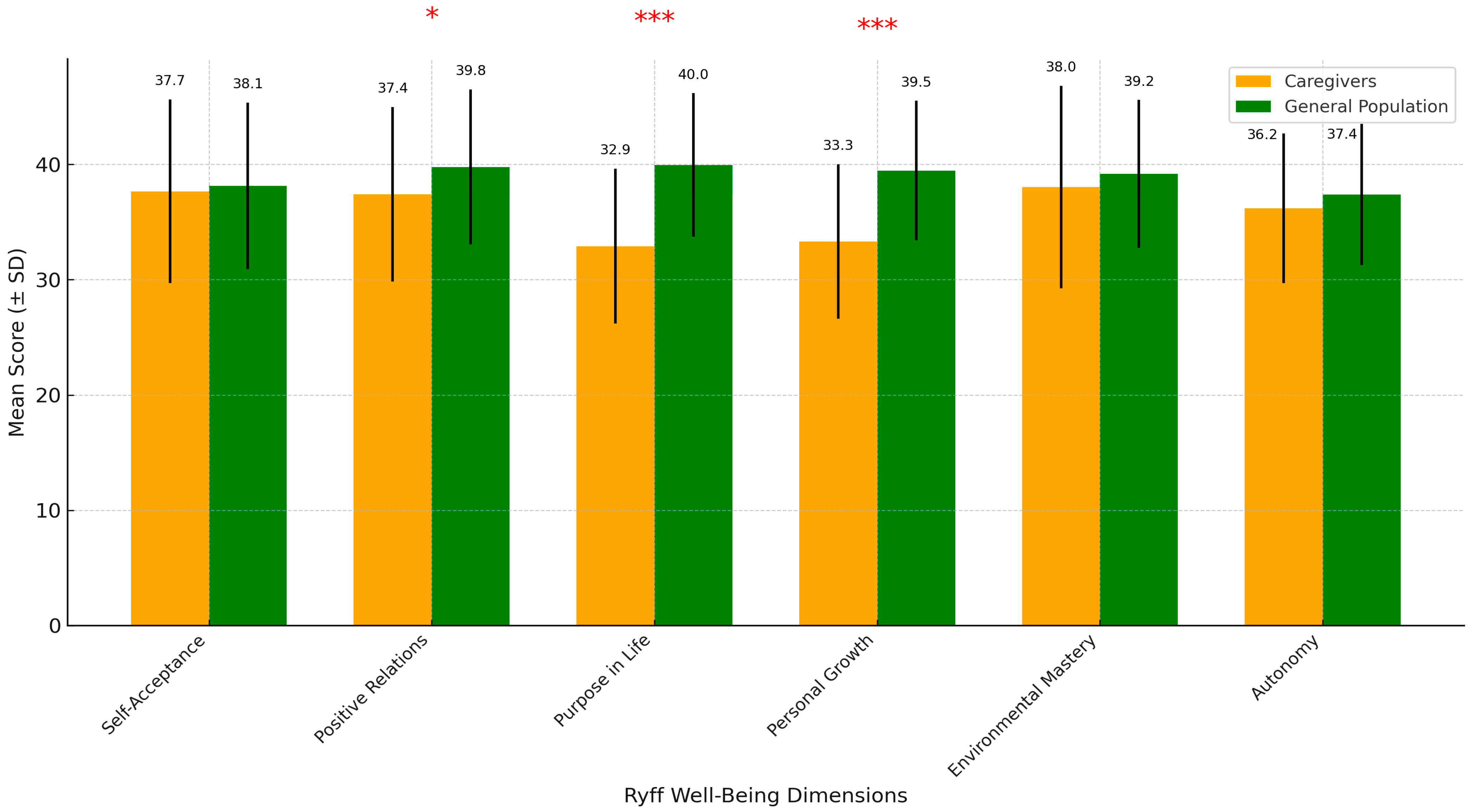 Purpose in Life | 32.91 | 6.72 | 23 | 54 | 39.96 | 6.22 | 23 | 54 |