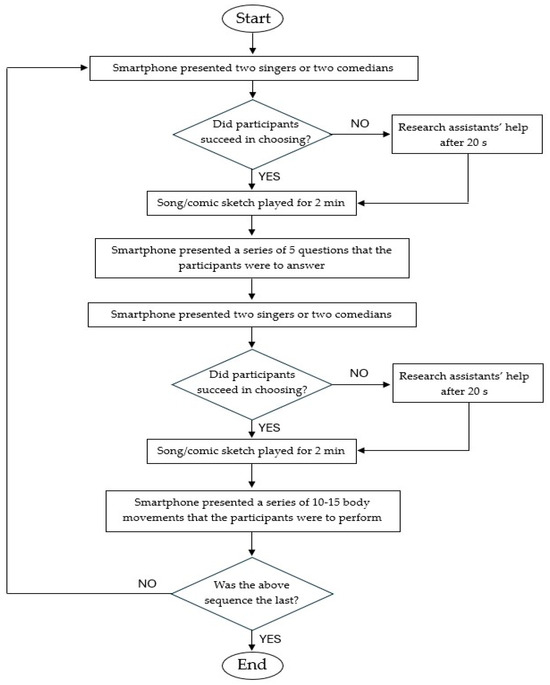 | 3. Leisure | Following the end of the questions of the cognitive activity stage, the smartphone presented the names of two singers or two comedians. Conditions were as in the first leisure stage. |