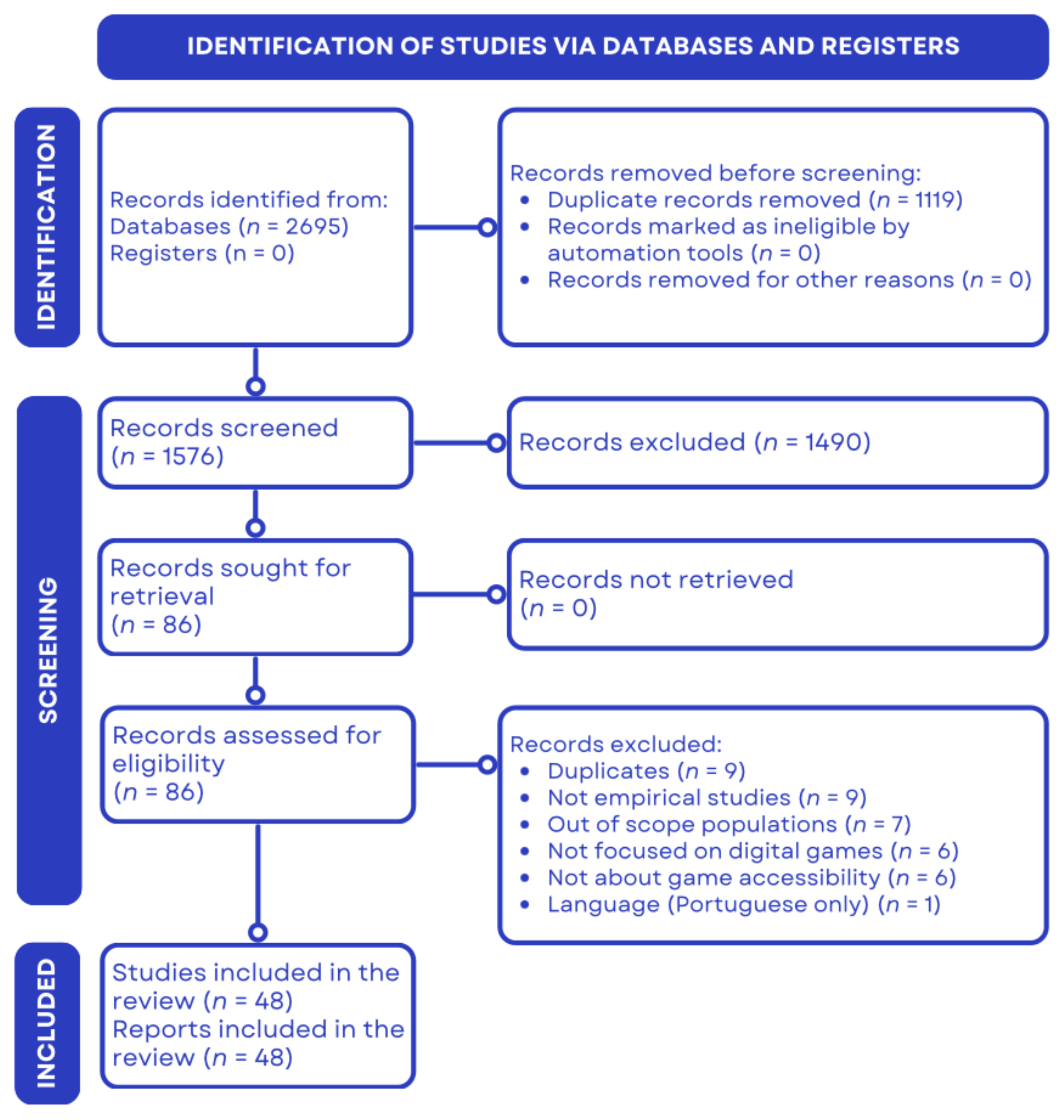 - RQ6—What gaps exist in current research on accessible game design for these populations, and what future directions are suggested?