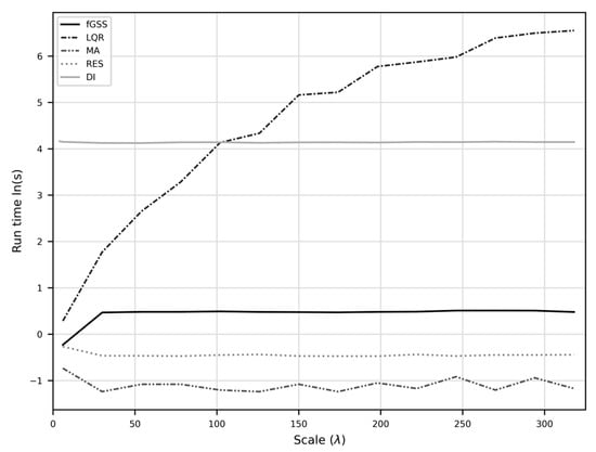 The time required by each method to complete an analysis as a function of scale. The computation times in seconds are plotted on a logarithmic scale.