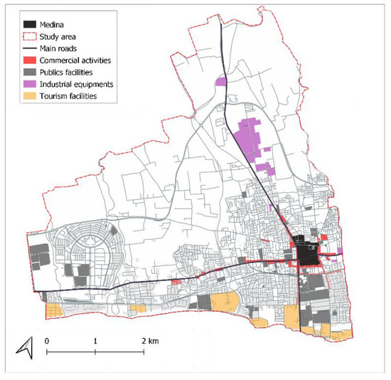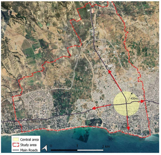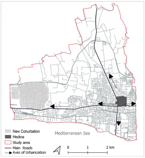 This expanded character of the urbanization was supported by new localizations near the main touristic roads (the regional road, RR 28), which progressively and continually displaced the city’s boundaries in favor of a coastal conurbation (Al Mrazga) (Figure 3).