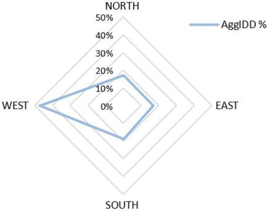 Figure 9 shows an important contrast between the road axes with a very high value of the Directional Dispersion Rate on the western axis (47%).