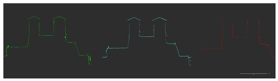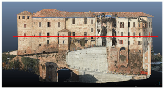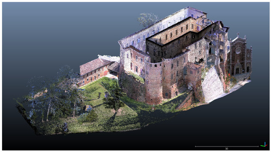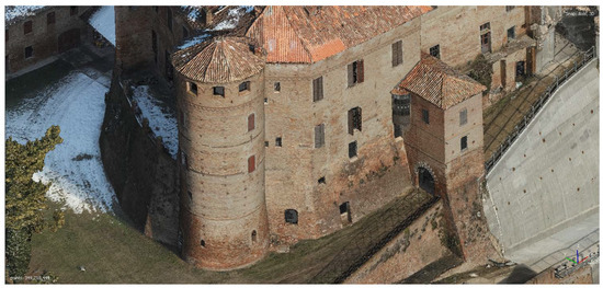 The scanning phase with a TOF sensor has been designed in order to cover the entire area of the castle (Figure 4): external (accessible areas) and all internal spaces (one point every 2–6 mm). However, this analysis and manuscript will focus only on the external metric data due to point coverage.