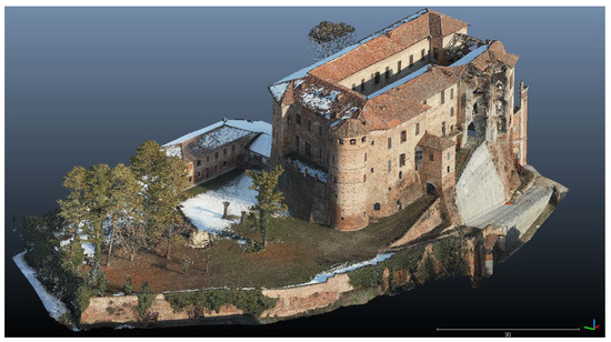 The collected datasets (P1, L1, and SX10) are not redundant, and they integrate with each other, permitting the obtainment of a complete digital backup (or digital twin) of the castle. This possibility is fundamental for the consolidation and restoration project after the collapse of a portion of the south wing. Moreover, the collected outputs could be used as basis for other kinds of documentation processes—for example, historic building information modelling (HBIM) of the castle (obtaining a digital informative twin), which would be useful for monitoring operations as well as collaborative approaches.