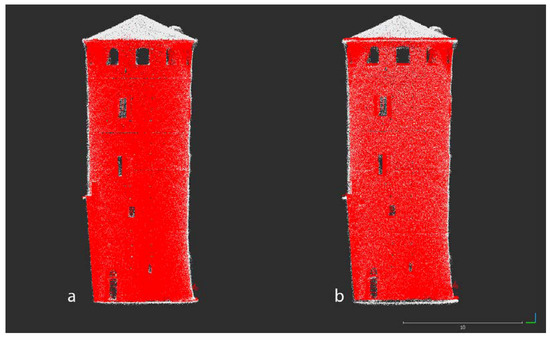 The point cloud management phase (related to the tower dataset and profiles) was not a time-consuming phase, as the segmentation and cleaning processes were very easy to conduct using the CloudCompare software. In fact, both the photogrammetric process and the point cloud acquisitions of the LiDAR sensors generated quite clean outputs with few noise points.