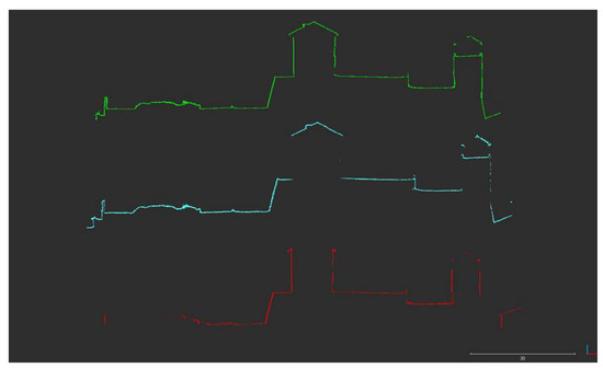 ICP registration and alignment were also computed for three profiles of the castle and the surroundings (on the x, y, and z axes), in order to establish reliable root-mean-square errors (RMSe) and cloud translations.