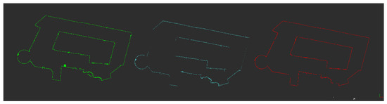 The last alignment is related to the L1 sensor (Figure 26), using the SX10 data as a reference. The theoretical overlap was set at 100%; the removal of the farthest points was disabled. The software computed a final RMSe of 0.148 m based on 9528 points (points limit: 20,000); translations were estimated as follows: x −0.071; y 0.029; and z −0.009. Details of both analyses are explained in Table 14.