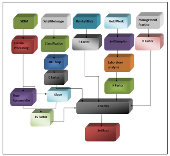 - Markose, V.J.; Jayappa, K.S. Soil loss estimation and prioritization of sub-watersheds of Kali River basin, Karnataka, India, using RUSLE and GIS. Environ. Monit. Assess. 2016, 188, 225. [Google Scholar] [CrossRef]