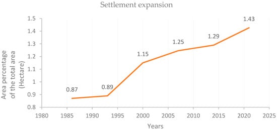Figure 4. Settlement area changes between 1986 and 2021, as a percentage of the total area.