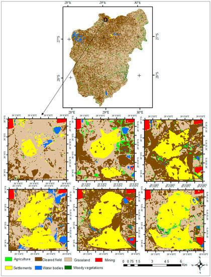2. Twisa, S.; Buchroithner, M.F. Land-use and land-cover (LULC) change detection in Wami River Basin, Tanzania. Land 2019, 8, 136. [Google Scholar] [CrossRef]