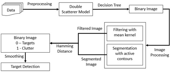 The proposed methodology reduces the complex task of target/object detection into simple image processing with minimum computational cost thanks to the simplified form of the binary image. By assigning the value 0 to each possible target and the value 1 to cells corresponding to clutter, the binary image will be constructed. The tree nodes follow the hierarchy indicated by the Double Scatterer Model, as previously mentioned. More specifically: