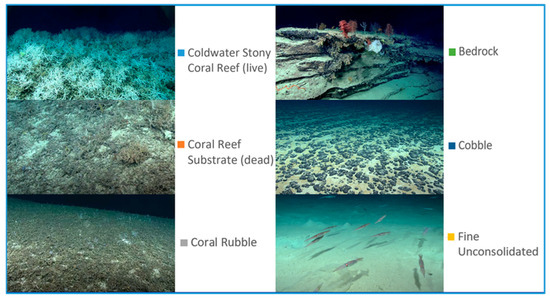 The “rubble” class in this study should not be interpreted as corals damaged by human activities. Rubble substrate in the context of this study area occurs naturally as a result of the gradual breakdown of dead coral-framework. Coral rubble can support high faunal diversity [16] and is therefore an important marine habitat. Direct evidence of damage to coral and rubble habitats was not a component of this study. Numerous studies have clearly documented the sensitivity of CWC mound habitat (including rubble) to bottom-contact fishing practices or other human activities [22,57,58]. The substrate data in this study was methodically translated to CMECS terminology, with the intention that this will improve the longevity and usefulness of the data in the longer term.