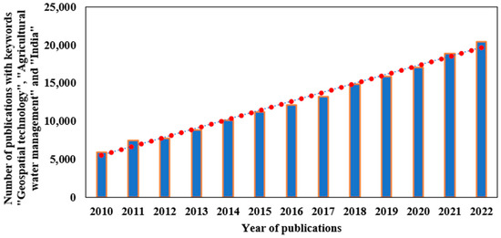 Tarate, S.B.; Patel, N.R.; Danodia, A.; Pokhariyal, S.; Parida, B.R. Geospatial Technology for Sustainable Agricultural Water Management in India—A Systematic Review. Geomatics 2024, 4, 91-123. https://doi.org/10.3390/geomatics4020006