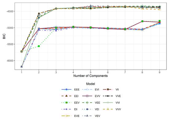 - Fraley, C.; Raftery, A.E. Model-Based Clustering, Discriminant Analysis, and Density Estimation. J. Am. Stat. Assoc. 2002, 97, 611–631. [Google Scholar] [CrossRef]