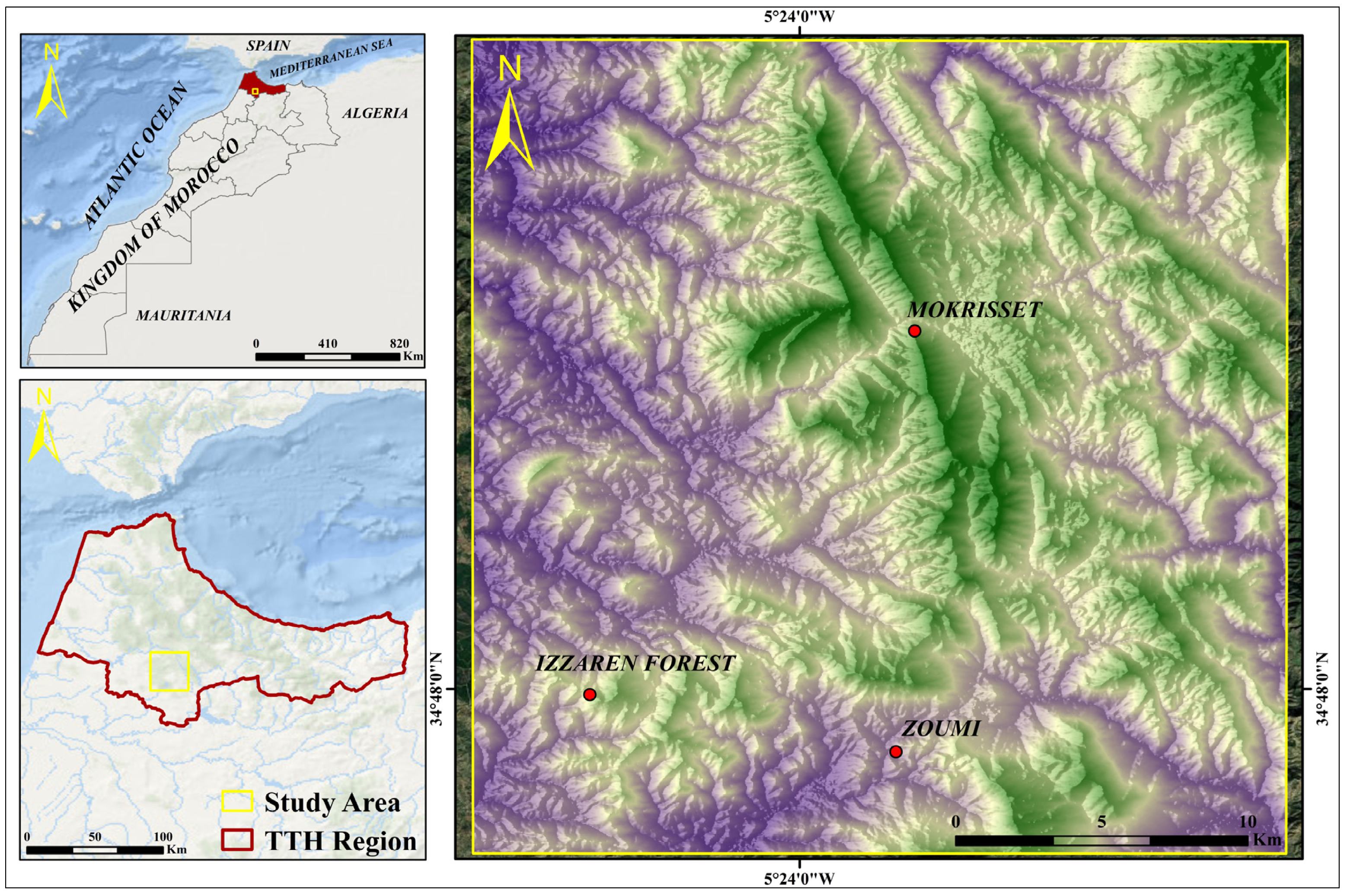 - El Kharim, Y. Etude des Mouvements de Versants Dans la Région de Tetouan (Rif Occidental): Inventaire, Analyze et Cartographie. Ph.D. Thesis, Univ Abdelmalek Essaadi, Tétouan, Morocco, 2002; 219p. [Google Scholar]