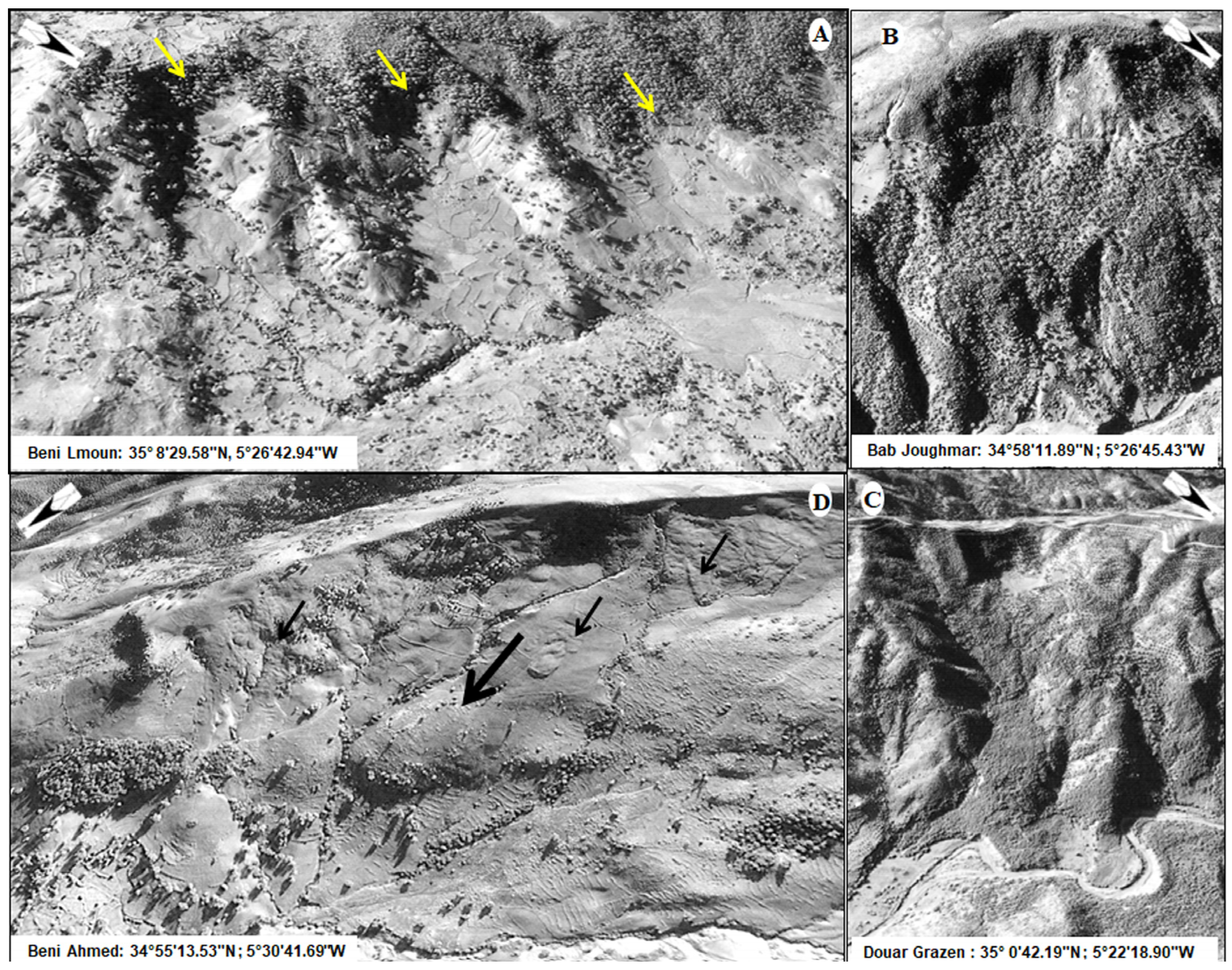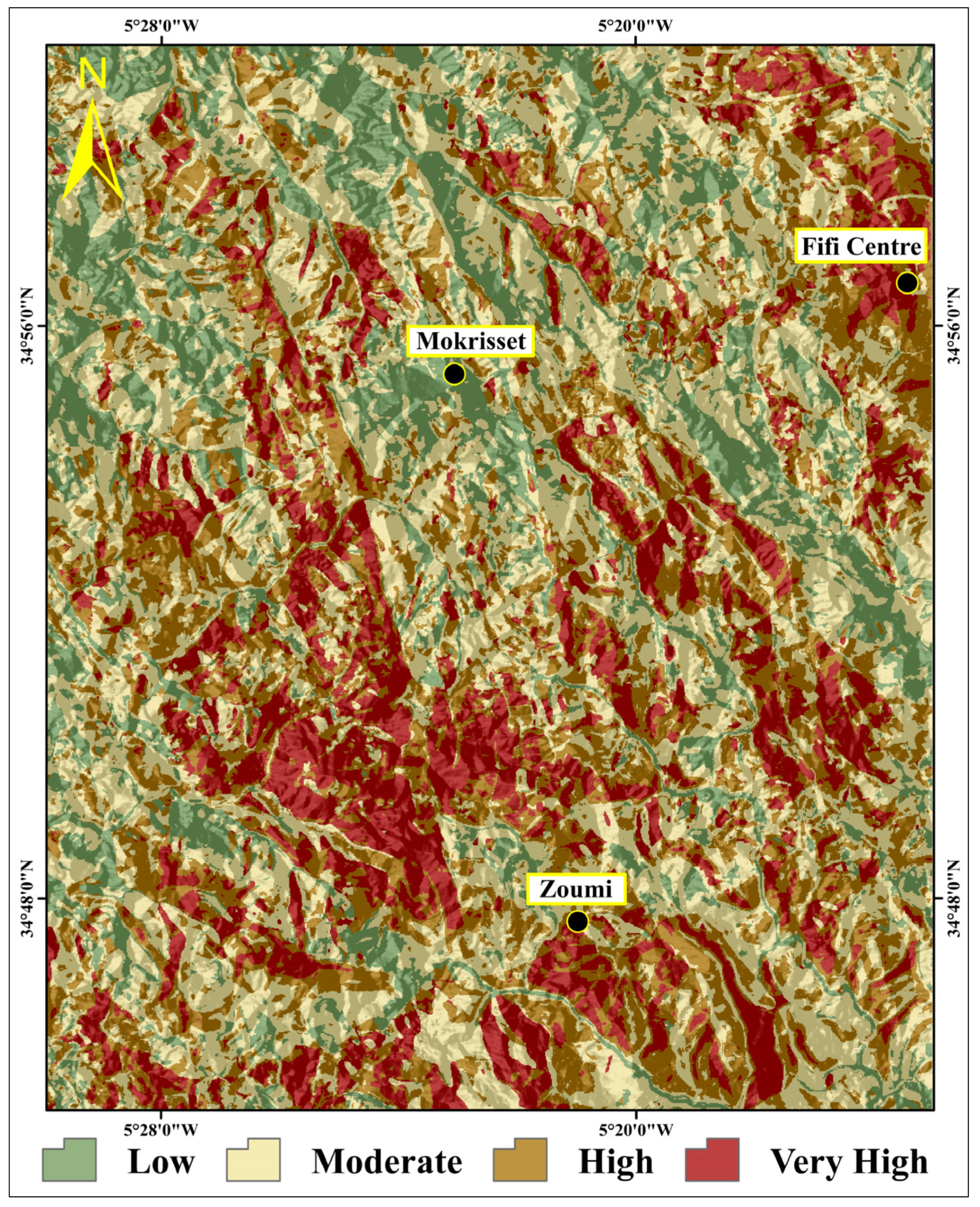- Elmoulat, M.; Brahim, L.A.; Mastere, M.; Jemmah, A.I. Mapping of mass movement susceptibility in the Zoumi Region using satellite image and GIS technology (Moroccan Rif). Int. J. Sci. Eng. Res. 2015, 6, 210–217. [Google Scholar]