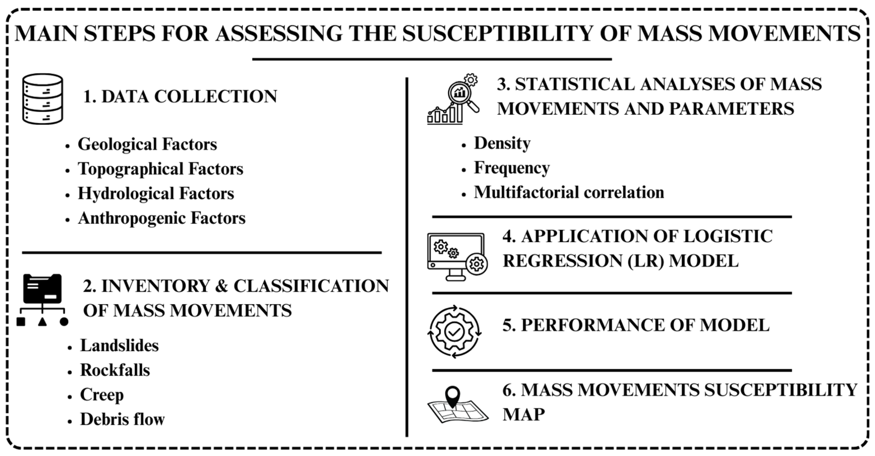 - El Miloudi, Y.; El Kharim, Y.; El Hamdouni, R. A novel approach for rockfall susceptibility mapping: Transfer learning between boosting models and logistic regression. Environ. Earth Sci. 2025, 84, 447. [Google Scholar] [CrossRef]