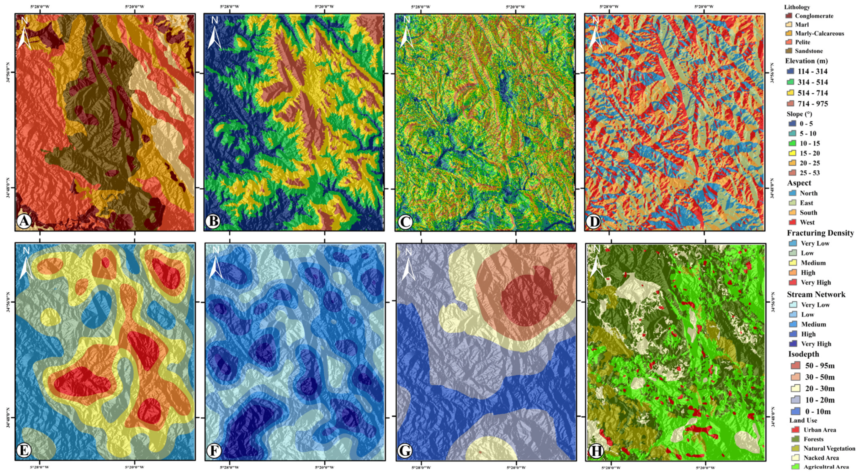 - Mastere, M. Mass Movement Hazard Assessment at a Medium Scale Using the Weight of Evidence Model and Neo-Predictive Variables Creation. In Mapping and Spatial Analysis of Socio-Economic and Environmental Indicators for Sustainable Development; Rebai, N., Mastere, M., Eds.; Advances in Science, Technology, and Innovation; Springer: Cham, Switzerland, 2020. [Google Scholar] [CrossRef]