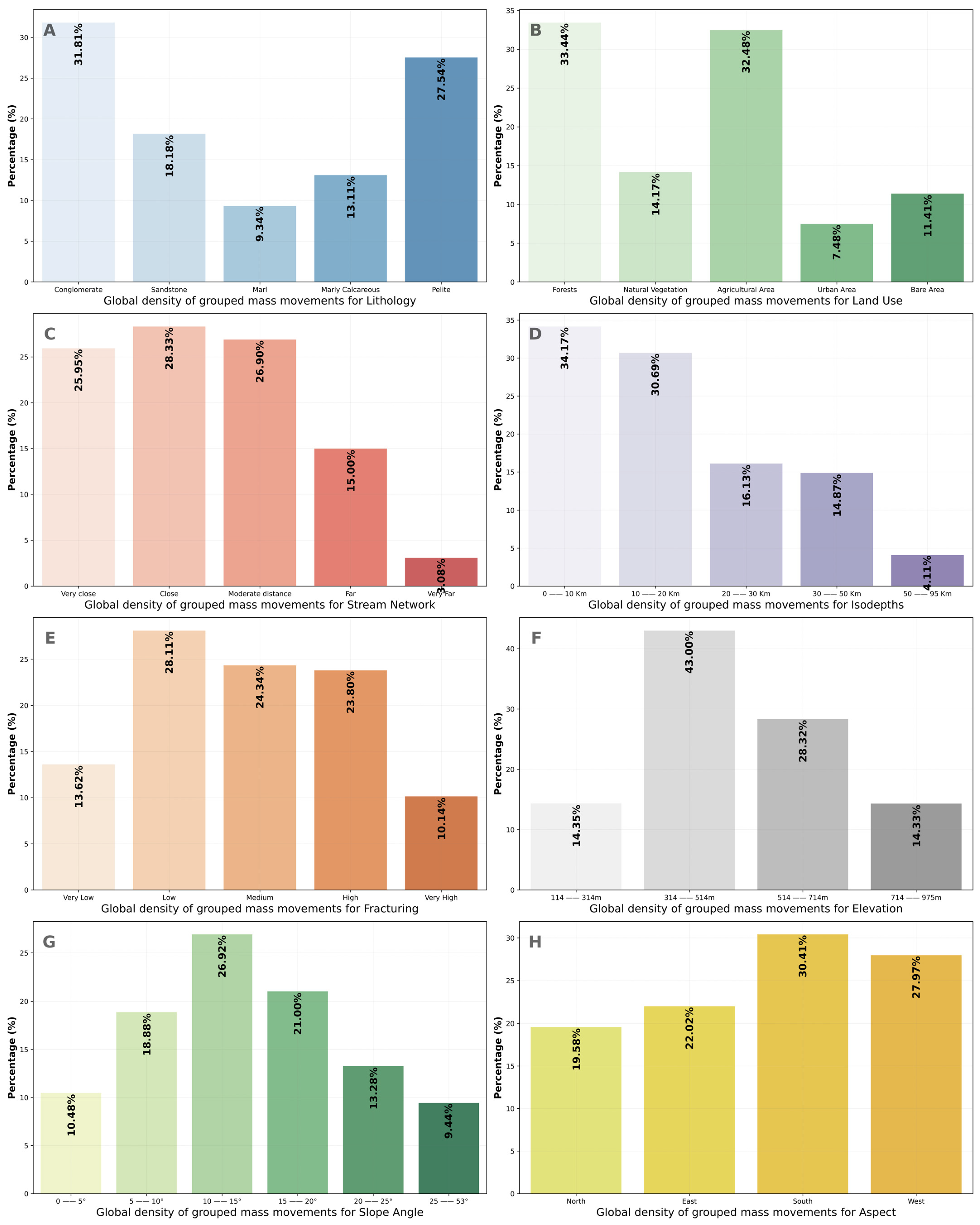 4.2. Geostatistical Analysis and Interpretation of Mass Movements Spatial Distribution