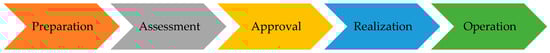 The process of constructing a small hydropower plant consists of several interrelated steps, as shown in Figure 4. In all individual phases, it is necessary to ensure consultation and cooperation with the participants in the proceedings and all affected entities.