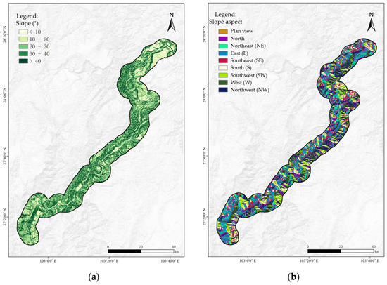 Based on the natural geographic characteristics of the area surrounding the Xiluodu Reservoir and previous studies conducted in the region, and with full consideration of data availability, the spatial scale of the study area, the extent of research coverage, and the precision required, ten assessment factors were ultimately selected. These factors included slope, aspect, elevation, curvature, distance to faults, lithological type, distance to rivers, NDVI, distance to roads, and land use type.