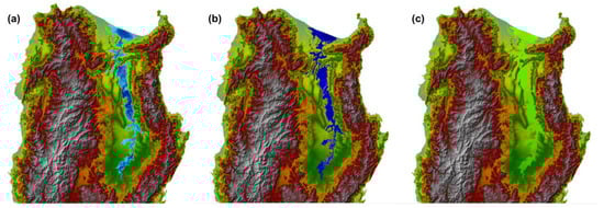 - Yamazaki, D.; Ikeshima, D.; Tawatari, R.; Yamaguchi, T.; O’Loughlin, F.; Neal, J.C.; Sampson, C.C.; Kanae, S.; Bates, P.D. A High-Accuracy Map of Global Terrain Elevations. Geophys. Res. Lett. 2017, 44, 5844–5853. [Google Scholar] [CrossRef]