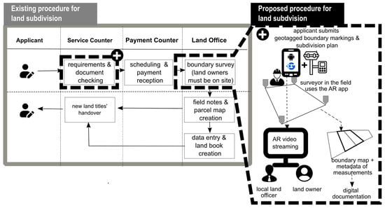 Land subdivision scenario using Geoclarity: the existing and proposed procedure (black dashed box).