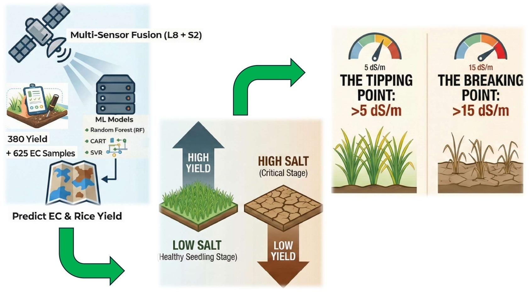 - assess the integration of Sentinel-2 and Landsat-8 with salinity-related indices for EC estimation; and