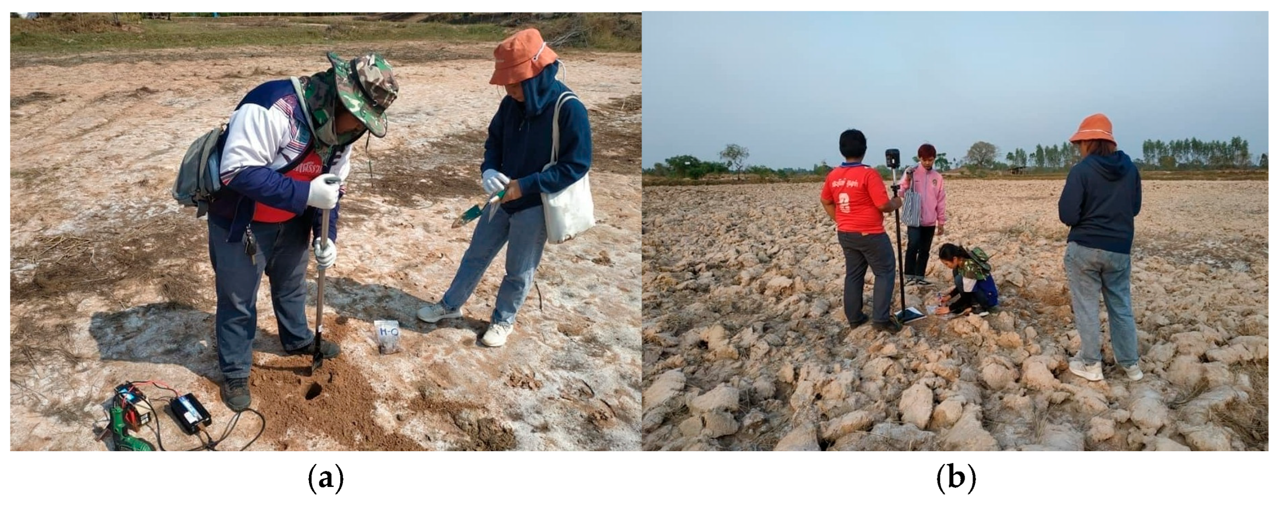 - Arunin, S. Characteristics and Management of Salt-Affected Soils in the Northeast of Thailand; CAB International: Wallingford, UK, 1984; pp. 336–351. [Google Scholar]