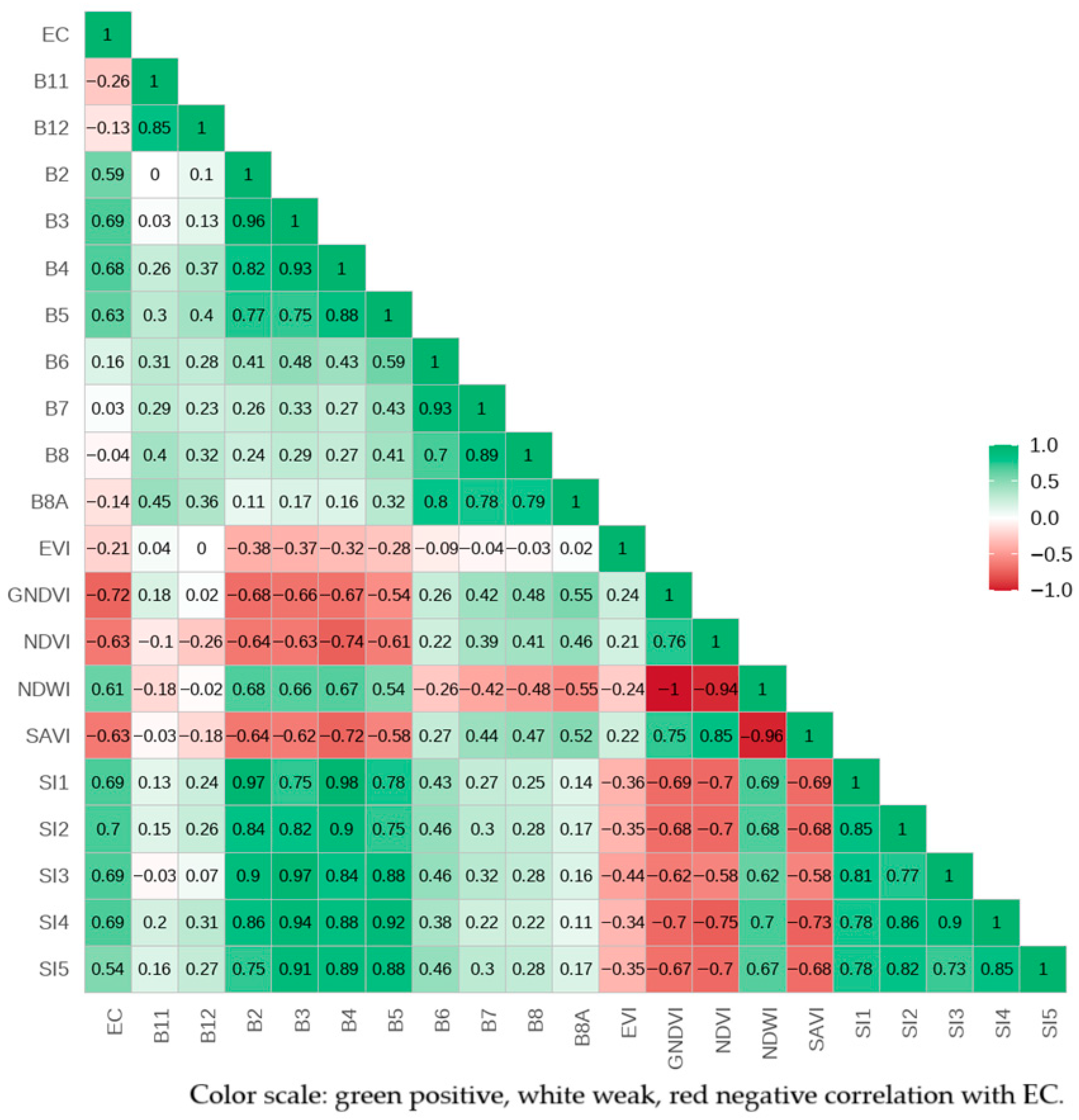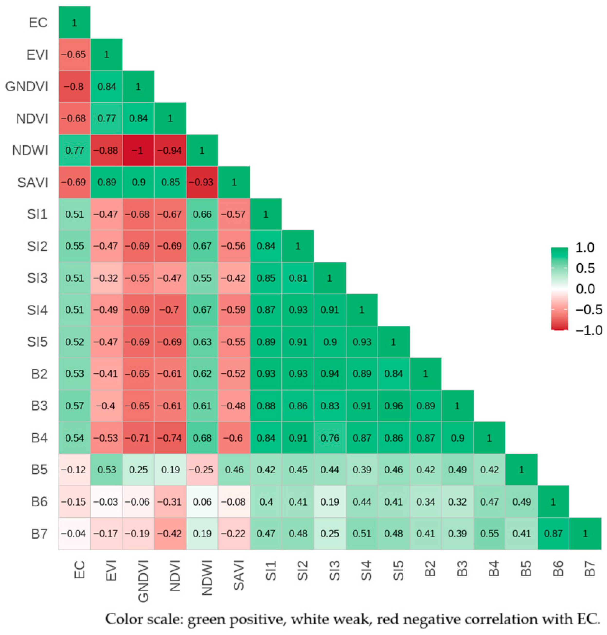 3.2.2. Correlation Analysis of EC and Satellite Derived Variables