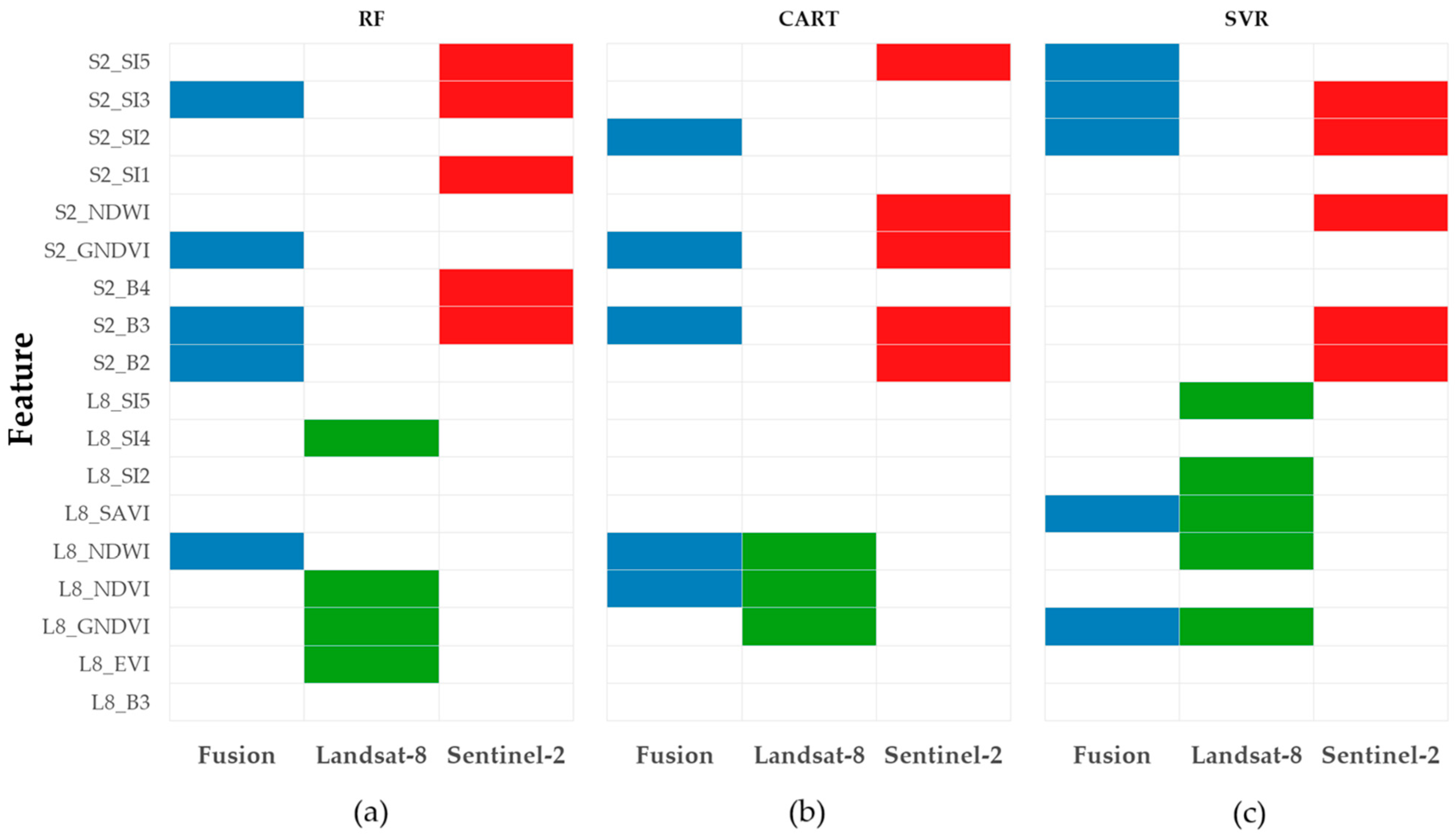 | 3 | Landsat-8 + Sentinel-2 | L8: B2-B7, S2: B2-8A, B11-12, NDVI, SAVI, EVI, GNDVI, NDWI, SI1-SI5 S2: B2-B8A, SI1-SI5 |