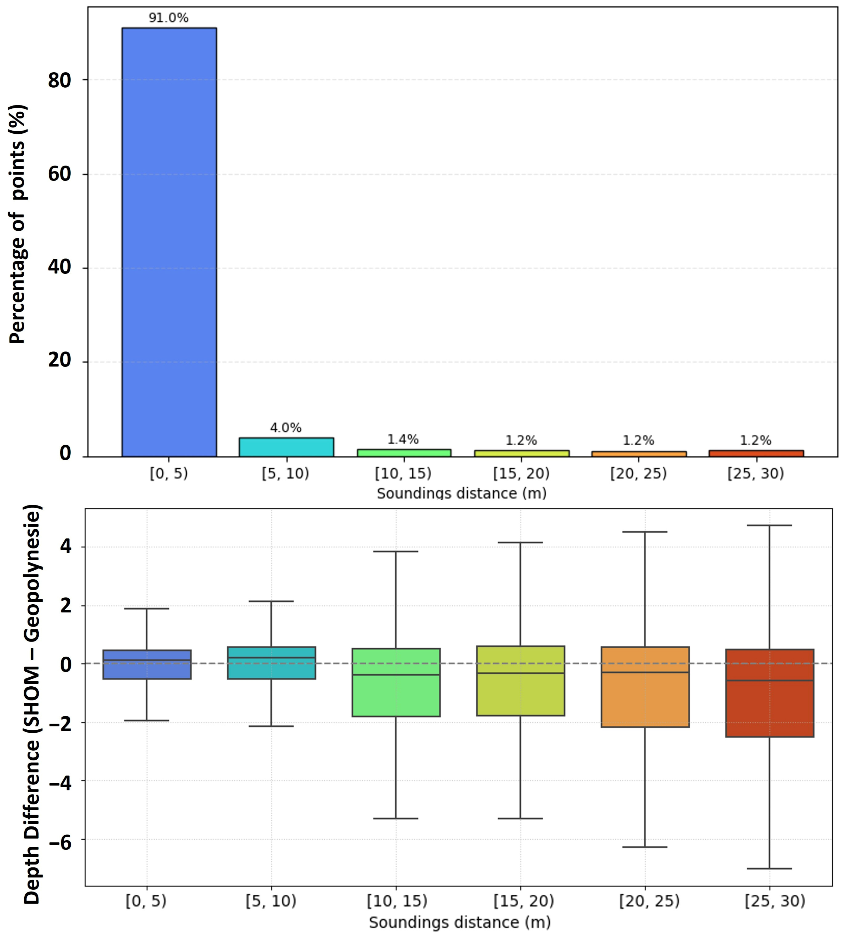 3.1. Comparison of SHOM and Multibeam Bathymetry Data