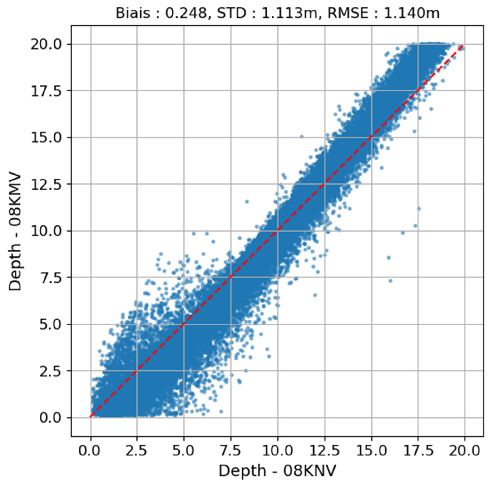 2.8. Accuracy Assessment of the 100 M Bathymetric Grid