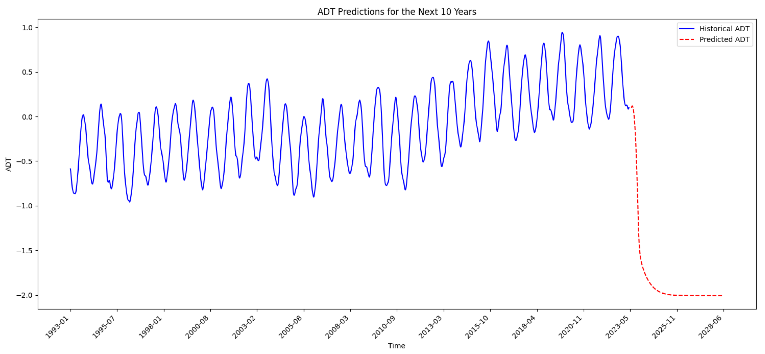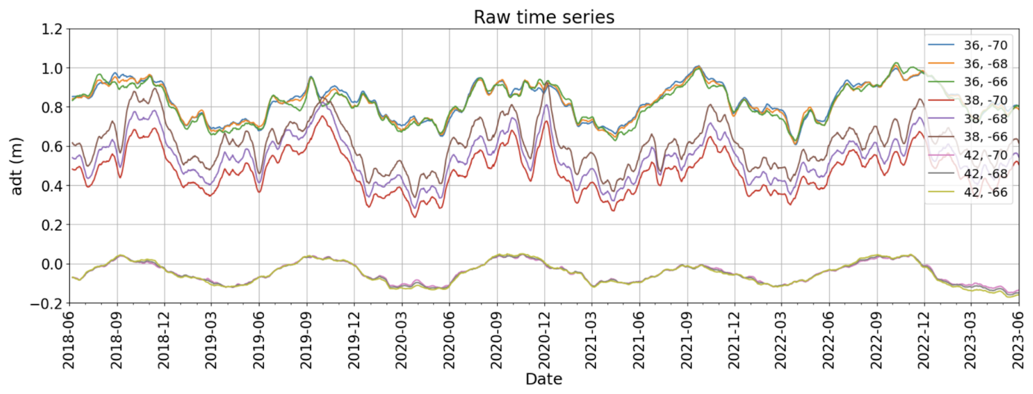 The ADT data enable analysis of temporal and spatial variations in sea surface height, influenced by factors such as ocean currents, wind stress, and temperature gradients. By examining these variations, we can identify trends and anomalies in ocean circulation, which are crucial for understanding the impacts of climate change on sea-level rise.