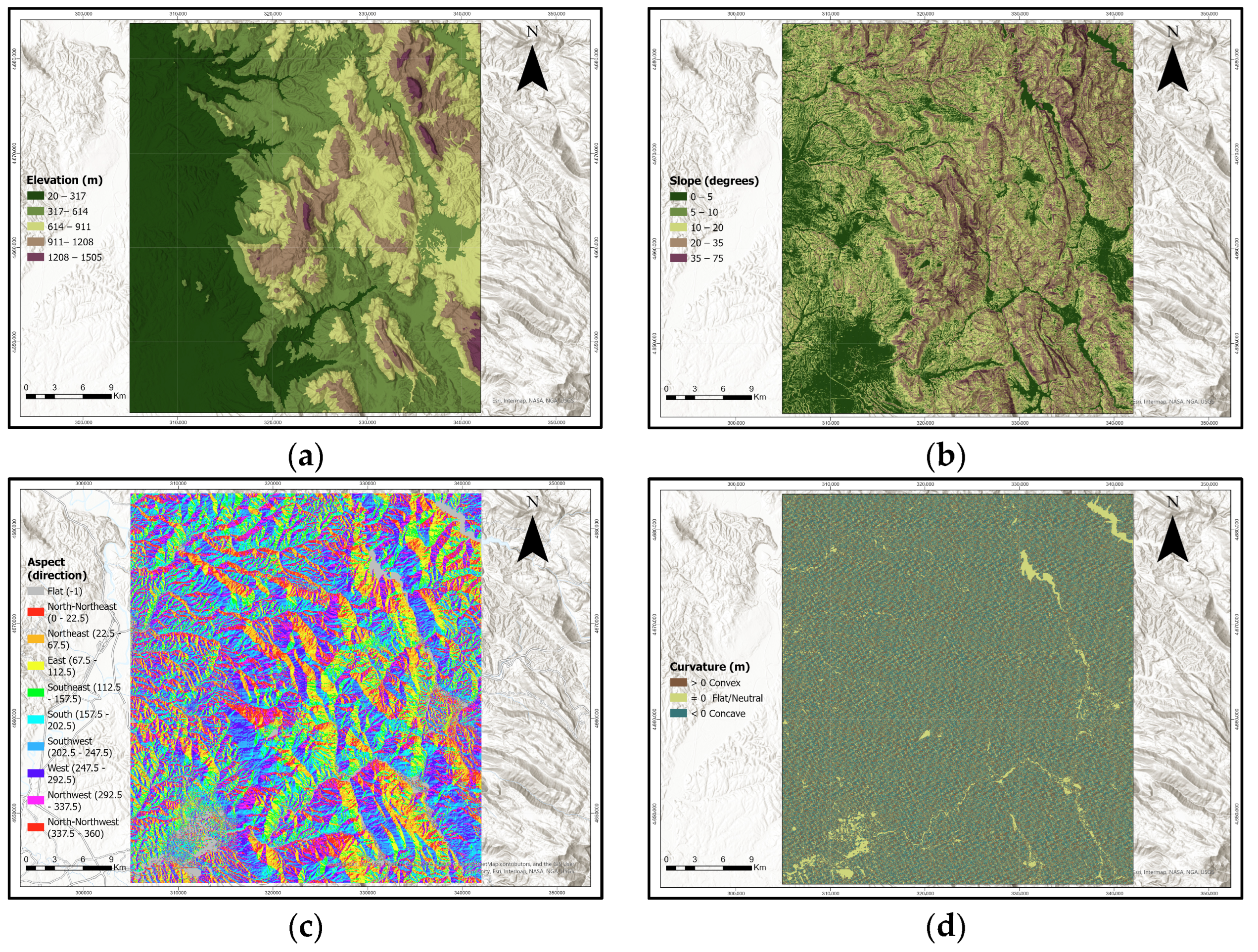 - Esri. ArcGIS Pro, Version 3.4.1; Environmental Systems Research Institute: Redlands, CA, USA, 2024. Available online: https://pro.arcgis.com/en/pro-app/latest/get-started/get-started.htm (accessed on 1 June 2025).
