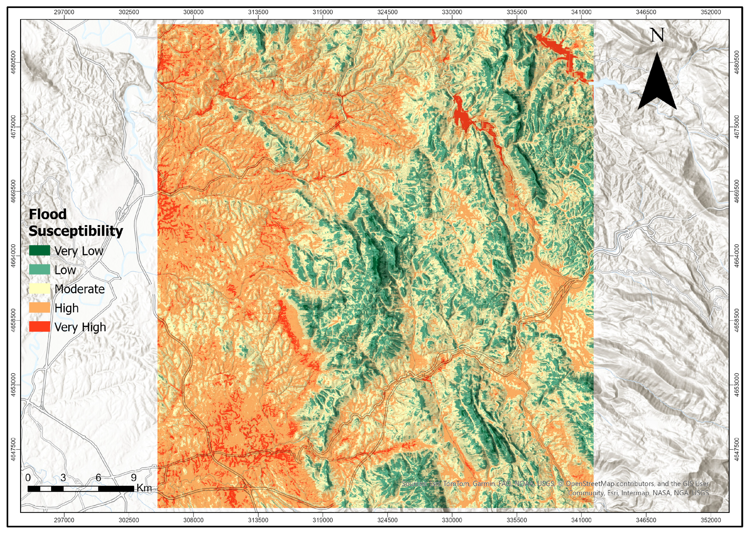 - Pradhan, B. Flood susceptible mapping and risk area delineation using logistic regression, GIS and remote sensing. J. Spat. Hydrol. 2010, 9, 4. Available online: https://scholarsarchive.byu.edu/josh/vol9/iss2/4 (accessed on 15 July 2025).