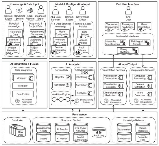 - Reis, T.; Krause, T.; Bornschlegl, M.X.; Hemmje, M.L. A Conceptual Architecture for AI-based Big Data Analysis and Visualization Supporting Metagenomics Research. In Proceedings of the Collaborative European Research Conference (CERC 2020), Belfast, Northern-Ireland, UK, 10–11 September 2020. [Google Scholar]