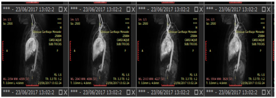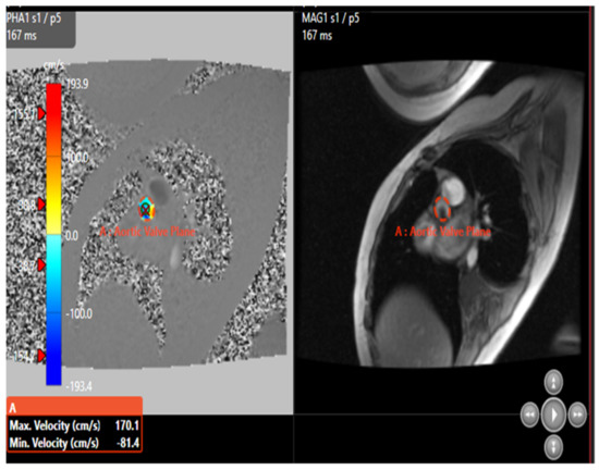 We used the product of Pie Medical Imaging “Caas MR 4D Flow” (https://www.piemedicalimaging.com/product/mr-solutions/caas-mr-4d-flow/, accessed on 21 November 2021 (Private access to the user with a procuration of agreement for the use of the product)) to analyze the valve behavior, considering the difficulty of the reconstruction of the valve structure from the flow sections. This cardiovascular solution aims to analyze blood flow in cardiovascular structures. Blood flow can be evaluated using three-way phase-contrast MRI images and the corresponding MRI images. In addition, blood flow can be analyzed by retrospective reformatting of flow planes. Caas MR 4D Flow is software that allows a cardiologist or radiologist to imagine and analyze blood flow in cardiovascular systems using multi-slice and multi-MRI images. It uses MRI and speed-coded images to examine blood flow in the heart and large arteries, and it contains the following features: analysis of quantitative cardiovascular results, segmentation of cardiovascular structures, and simulation of the intensity and direction of blood flow.