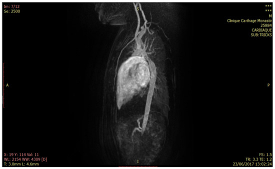 For a 10-year-old patient with a history of congenital valve and valvular aortic stenosis on close MRI and coarctation (operated and then dilated) in the sense of shone syndrome, 74 cardiac MRI scans and 3057 images were obtained. Technically, reconstruction and segmentation of the descending aorta were performed using the following: