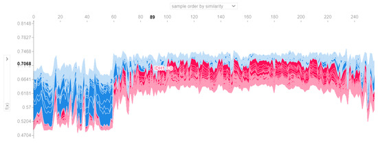 In contrast, InterpretML provides an opportunity to navigate through different instances using a drop-down menu, presented in Figure 9. The estimated SHAP results for the specific instance are shown automatically by selecting a particular instance. This provides an opportunity to navigate through different instances, having a better overview of the results and the possibility to compare the output of different instances faster. In particular, information such as the predicted class, actual class, and residual error for each instance is shown in the drop-down menu, as well as in the main window. This provides an opportunity to compare similar instances based on predicted class, actual class, or the residual error, thus showing an opportunity to understand a model’s class prediction more comprehensively. Moreover, interactions such as zoom in, zoom out, pan, select, and download are supported. However, InterpretML supports only KernelSHAP methods.