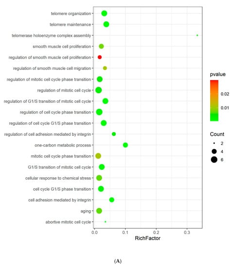 In this study, we initially screened out 26 potential targets of Tan IIA in the treatment of PH through data mining. The PPI analysis offers deep knowledge of the drug–target interaction network [13]. The results of network pharmacology and PPI analysis showed that the Tan IIA-related core drug targets involved HSP90AA1, PTPN11, ATM, CA2, TERT, PRKDC, and APEX1. Previous studies showed that HSP90AA1 was highly expressed in the lung tissues of PAH patients and associated with inflammation activation and SMC phenotype change in pulmonary arteries [14]. Meanwhile, the human PTPN11 gene encodes the protein tyrosine phosphatase Shp2, which play critical roles in the development of PAH [15]. It has long been considered that ATM protein kinase mediates DNA damage-induced cell death through inducing apoptosis in human disease [16]. The proteomics discovery of CA2 is a serum biomarker for PAH and participate in the pathogenesis of PAH [17]. TERT was increased in pulmonary vasculature of PH patients, while experimental studies showed that TERT promotes proliferation and migration of pulmonary artery SMC and regulates cell cycle transition from the G0/G1 phase to the S phase [18]. PRKDC is involved in SMC proliferation, innate immune response, and cell apoptosis, which is associated with the pathobiology of PH [19,20]. Studies have also shown that APEX1 affects DNA repair and redox regulation of transcriptional factors, thus increasing the risk of developing PH [21]. Based on the above analysis, we can conclude that these seven core targets are related to Tan IIA-based therapy in PH.