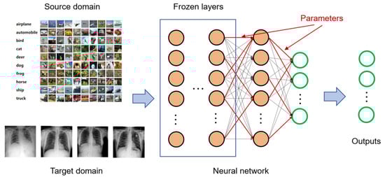 The overall workflow of transfer learning is illustrated in Figure 2. When transferring the knowledge of the network from the source domain to the target domain, the initial layers of the deep neural network remain unchanged. In other words, initial convolutional layers are frozen, and the training is conducted to optimize the remaining network parameters for the target domain data.
