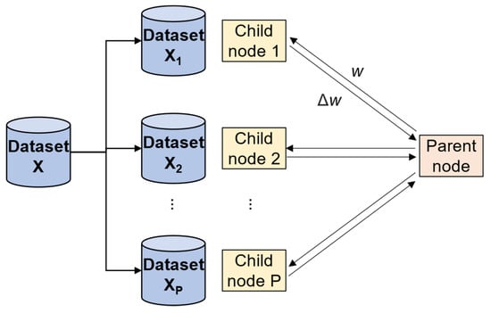Illustration of a parent–child parallel computing method. The dataset is divided into portions and each child node trains the model using the sub-dataset it was assigned ( ).