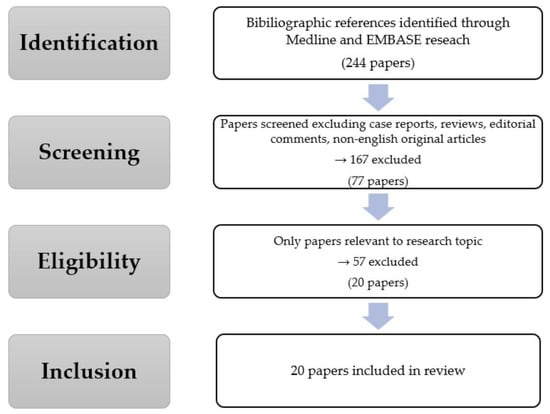 A bibliographic search for relevant publications using Medline and EMBASE was performed in November 2022. We chose the following keywords: “Machine”, “Deep Learning”, “Bladder cancer”, and “Artificial Intelligence”. Only original articles published in the English language were considered. Suitable publications were reviewed to determine whether they were eligible for inclusion (Figure 1). Case reports, reviews, and editorial comments were excluded.