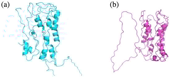 - Jumper, J.; Evans, R.; Pritzel, A.; Green, T.; Figurnov, M.; Ronneberger, O.; Tunyasuvunakool, K.; Bates, R.; Žídek, A.; Potapenko, A.; et al. Highly accurate protein structure prediction with alphafold. Nature 2021, 596, 583–589. [Google Scholar] [CrossRef]