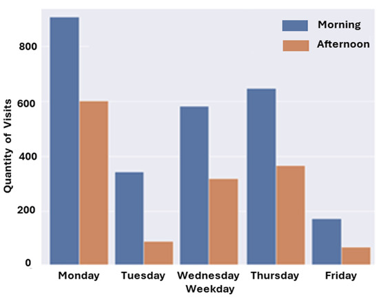 Following the de-identification process, the original 9027 records were streamlined to 4129 through consolidation, where each record signifies an individual visit and is accompanied by a binary label. Of the initial 24 features, 19 were nominal, non-metric values, four were defined as ratios, and one as an interval. Following the elimination of non-relevant features and addressing label leakage (specifically, removal of post-visit CPT codes), the features were reduced to 14. The EDA (Figure 2) reveals two key insights. Firstly, certain age groups exhibit a higher propensity for visits, with the top three leading age groups being 70s, 60s, and 50s. Given the facility’s focus on serving the Veteran population, younger patients (20 years or below) are less likely to have met service requirements. The level of service-connected disability may also influence the demographic seeking care at the facility. Additionally, the prevalence of head and neck cancers tends to increase with advancing age, particularly beyond 50 [17].
