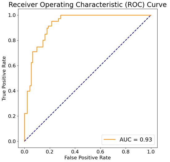 The model’s performance was assessed using the receiver operating characteristic (ROC) curve with Sklearn.metrics and roc_curve roc_auc_score [46]. The ROC curve is a valuable tool for visualizing and quantifying the discrimination ability of a binary classification model, while the area under the ROC curve (AUC) provides a summary measure of the model’s performance.