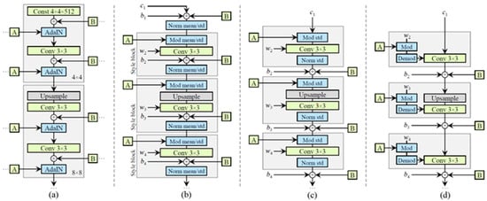 - Karras, T.; Laine, S.; Aittala, M.; Hellsten, J.; Lehtinen, J.; Aila, T. Analyzing and Improving the Image Quality of StyleGAN. arXiv 2019, arXiv:1912.04958. [Google Scholar]