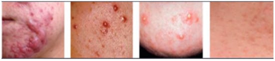- Shen, X.; Zhang, J.; Yan, C.; Zhou, H. An Automatic Diagnosis Method of Facial Acne Vulgaris Based on Convolutional Neural Network. Sci. Rep. 2018, 8, 5839. [Google Scholar] [CrossRef]